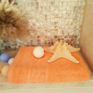 Prețul inițial a fost: 28,00 lei.23,00 leiPrețul curent este: 23,00 lei.Prosop baie Greek Border Jacquard – 100% Bumbac, 500g/mp, orange