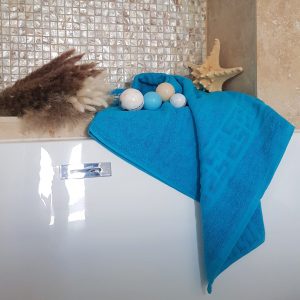 Interval de prețuri: 23,00 lei până la 45,00 leiProsop baie Greek Border Jacquard – 100% Bumbac, 500g/mp, turquoise