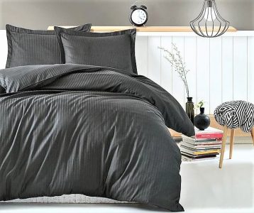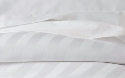 Cearceaf de pat, 100% bumbac, damasc cu latime dungi de 1 cm, alb