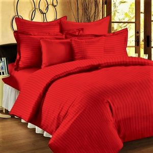 Cearceaf de pat Best Cotton Deco, 100% bumbac, Damasc Saten, dimensiune dungi 1 cm, Rosu