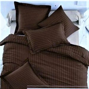 Cearceaf de pat Best Cotton Deco, 100% bumbac, Damasc Saten, dimensiune dungi 1 cm, Ciocolata