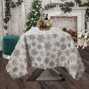 Interval de prețuri: 70,00 lei până la 84,00 leiFata de masa Best Cotton Snow – 160×160 cm, 100% bumbac , verde cu motive de Craciun