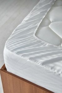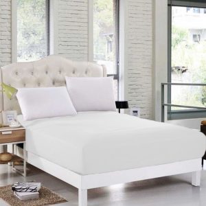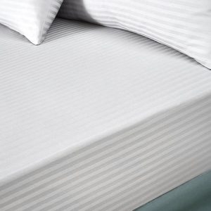 87,00 leiHusa pat cu elastic 160×200+20 cm, 100% bumbac, damasc cu latime dungi de 2 cm, alb