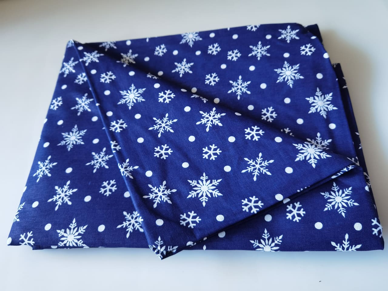 Cearceaf pat 200x220cm , bumbac 100% , albastru cu fulgi de zapada -z005a