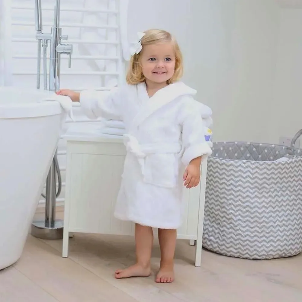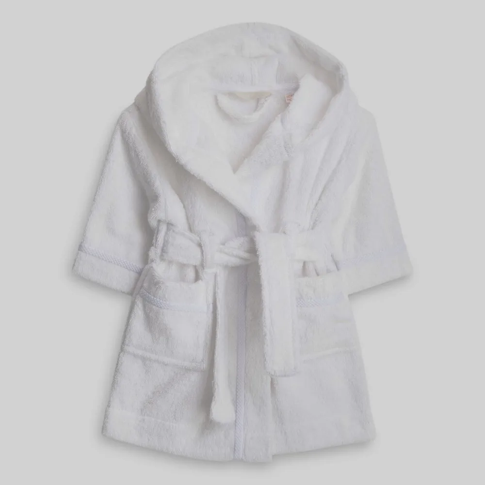 Halat de baie cu gluga pentru copii Best Cotton, 100% bumbac, tesatura prosop, alb