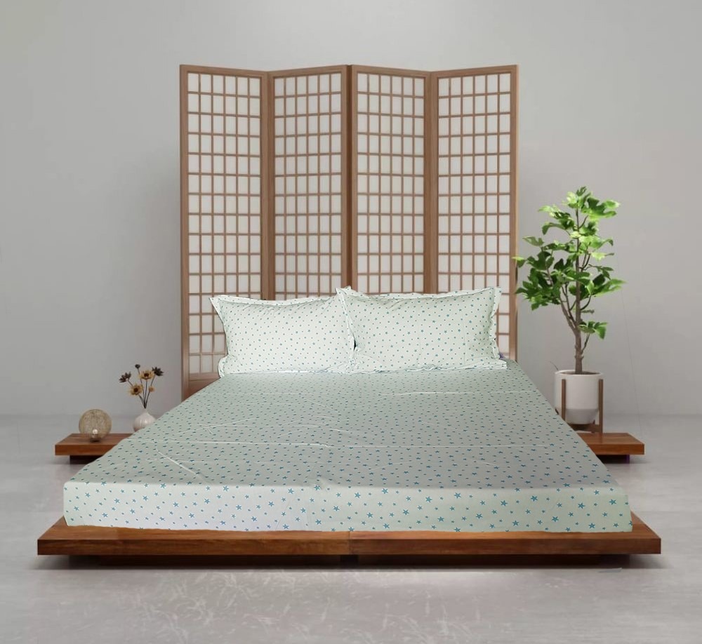 Dimensiune: cearceaf de pat 220×240 cm si 2 fete de perna 50×70 cu rame (4 cm)