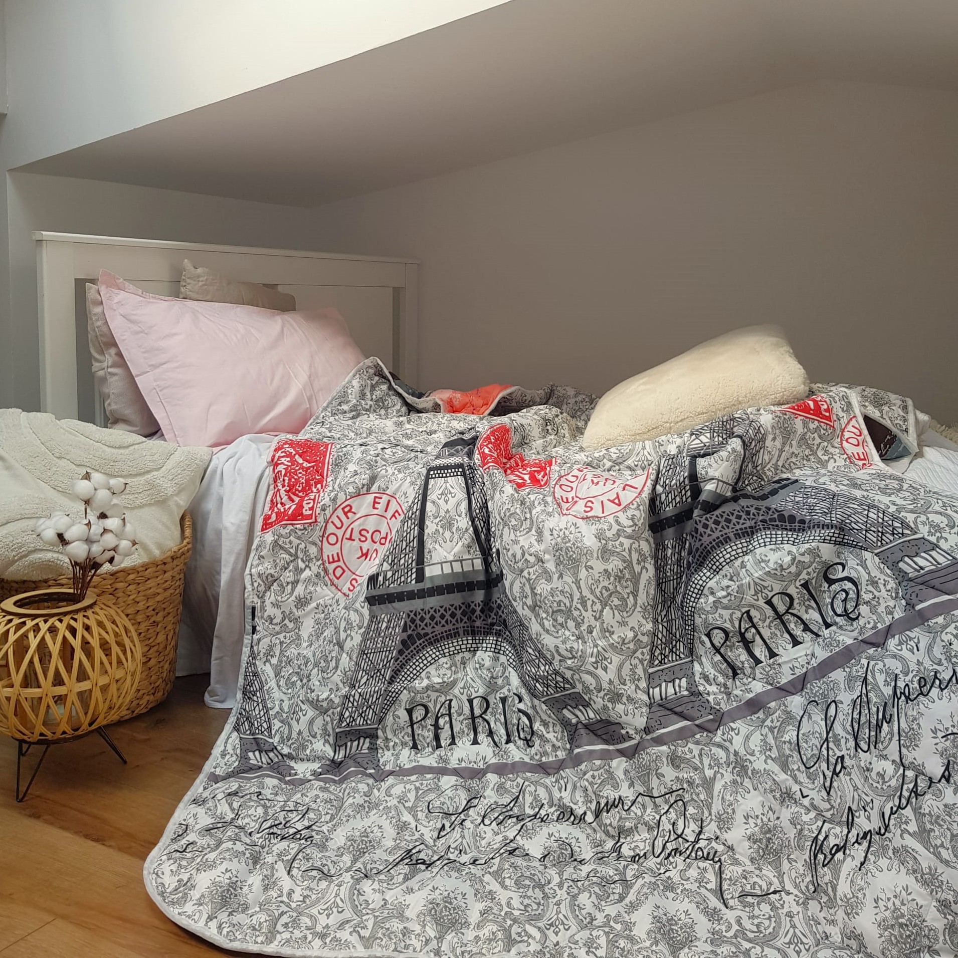 Pilota de vara, matlasata – cu 2 fete, 150 gr/mp, imprimata, umplutura puf siliconizat, Paris
