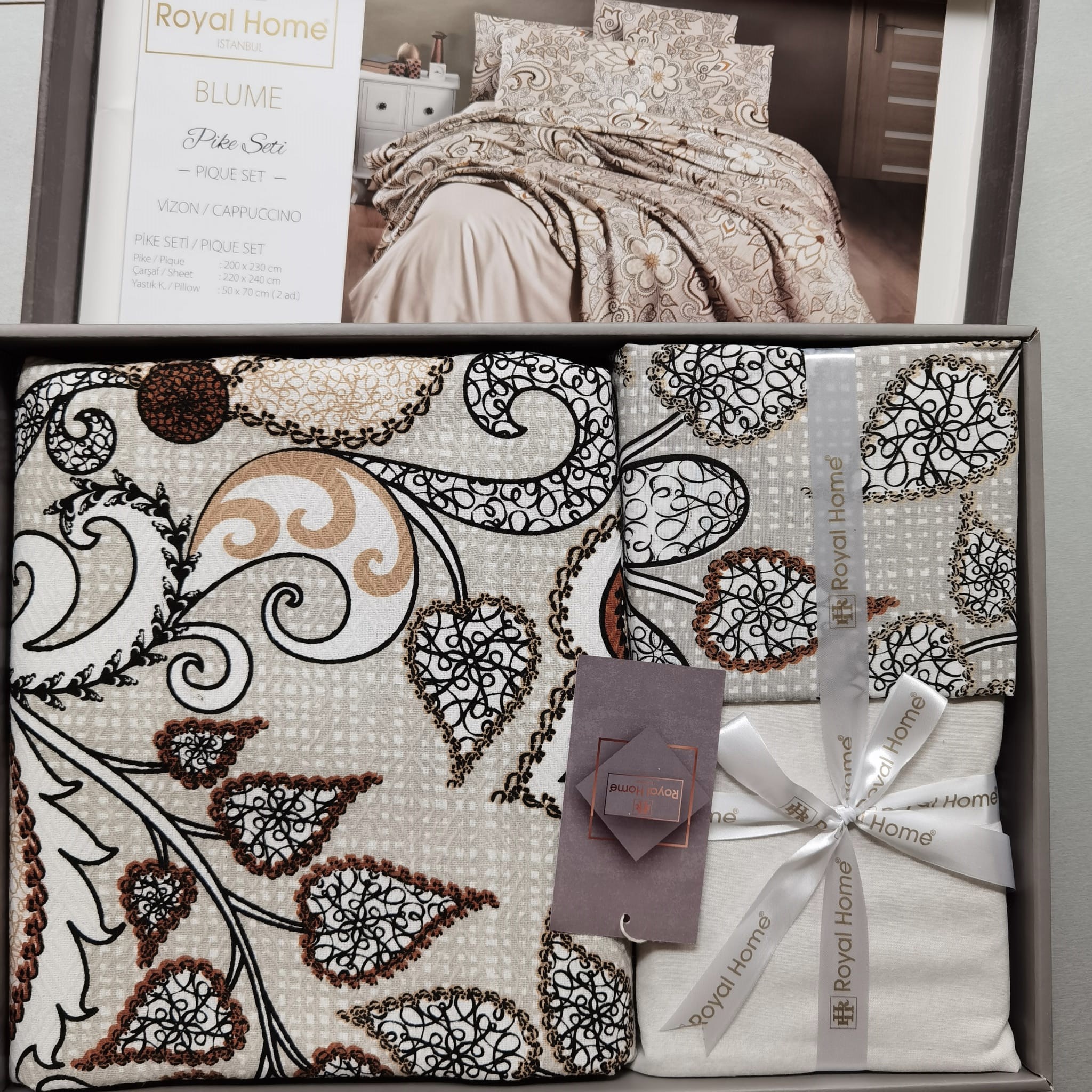 Set pentru pat dublu cu cuvertura tesuta, bumbac 100%, 200×230 cm – Blume cappuccino