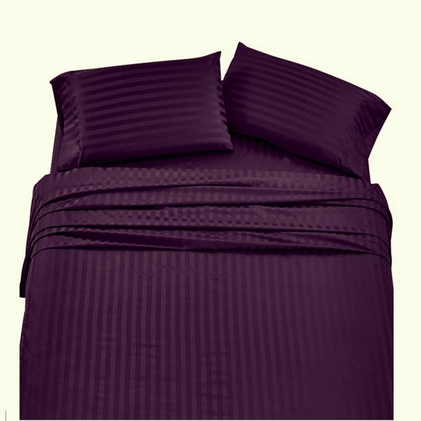 Cearceaf de pat Best Cotton Deco, 100% bumbac, Damasc Saten, dimensiune dungi 1 cm, Mov