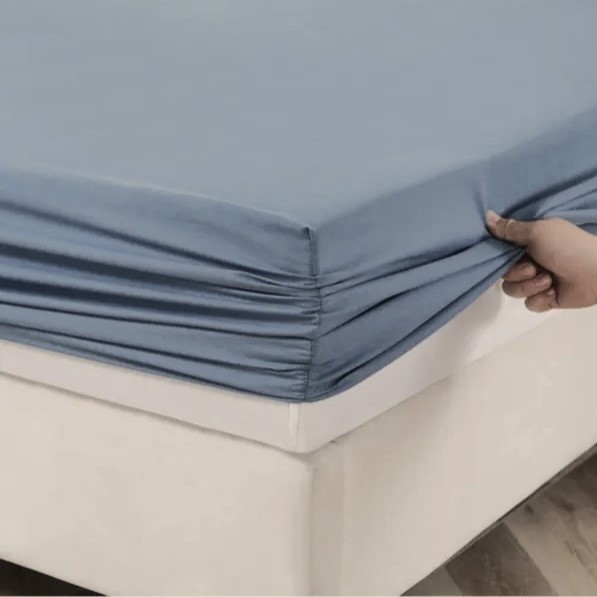 Husa pat cu elastic Best Cotton – Tricot, 100% bumbac, albastru