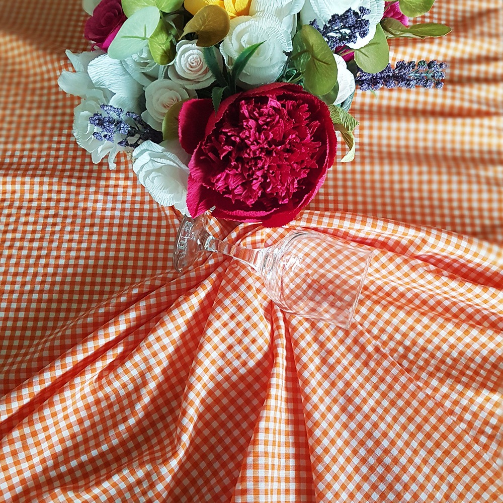 Fata de masa Best Cotton Primavara P1 - 150x150 cm, 100% bumbac, portocaliu cu alb