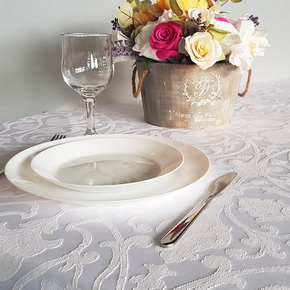 Fata de masa Best Cotton jacquard, 160x220 cm, alb, compozitie: 70% bumbac / 30% Poliester