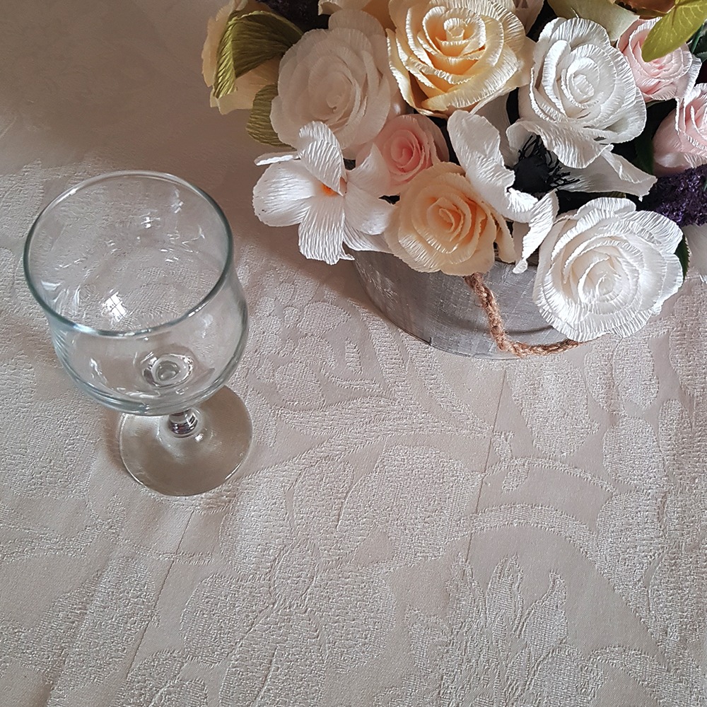 Fata de masa Best Cotton Hotel, dimensiune 160x180, tesatura Damasc de culoare crem, 100% bumbac.